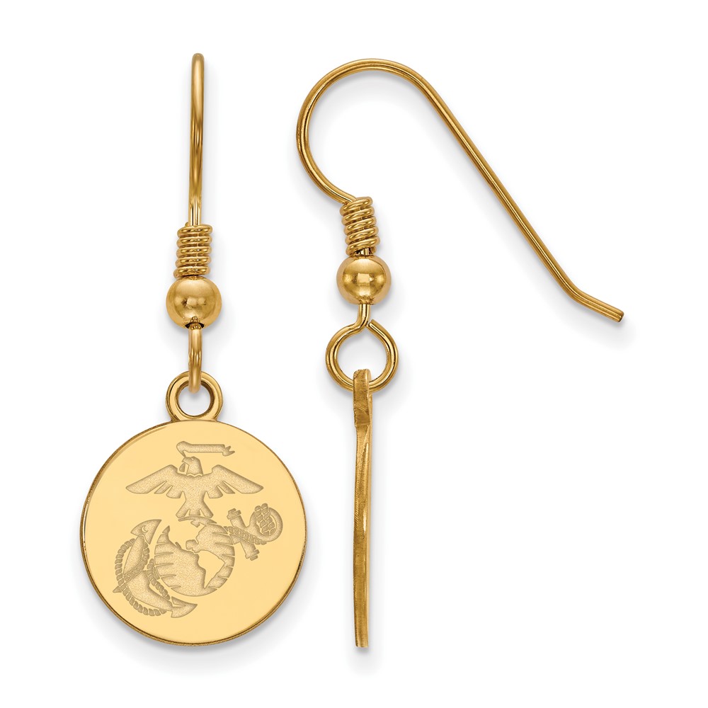 Gold Plated SS U.S. Marine Corps Disc Dangle Earrings