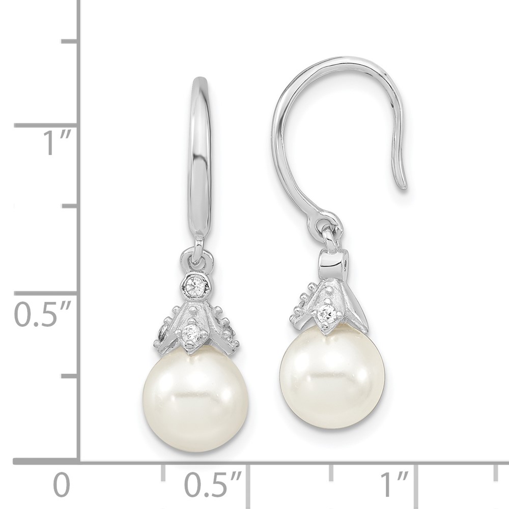 Majestic Sterling Silver Rhodium-plated 8-9mm White Imitation Shell Pearl CZ Dangle Earrings