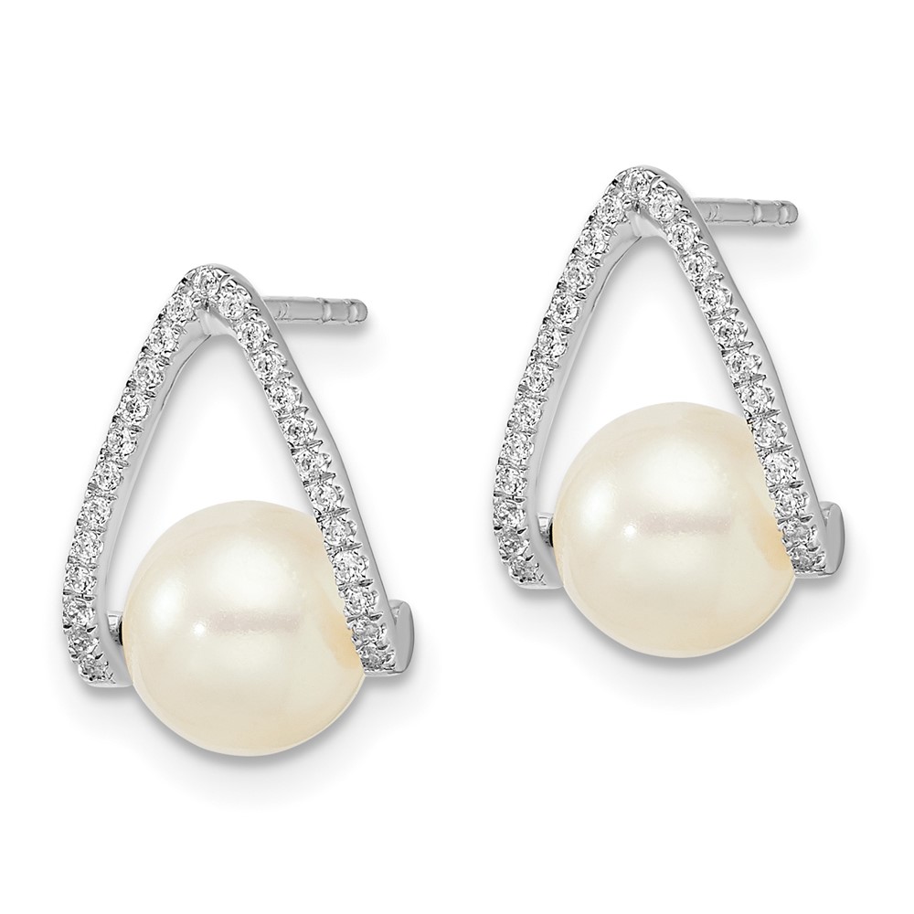 14k White Gold 6-7mm White Button Freshwater Cultured Pearl and .15 carat Diamond Post Earrings