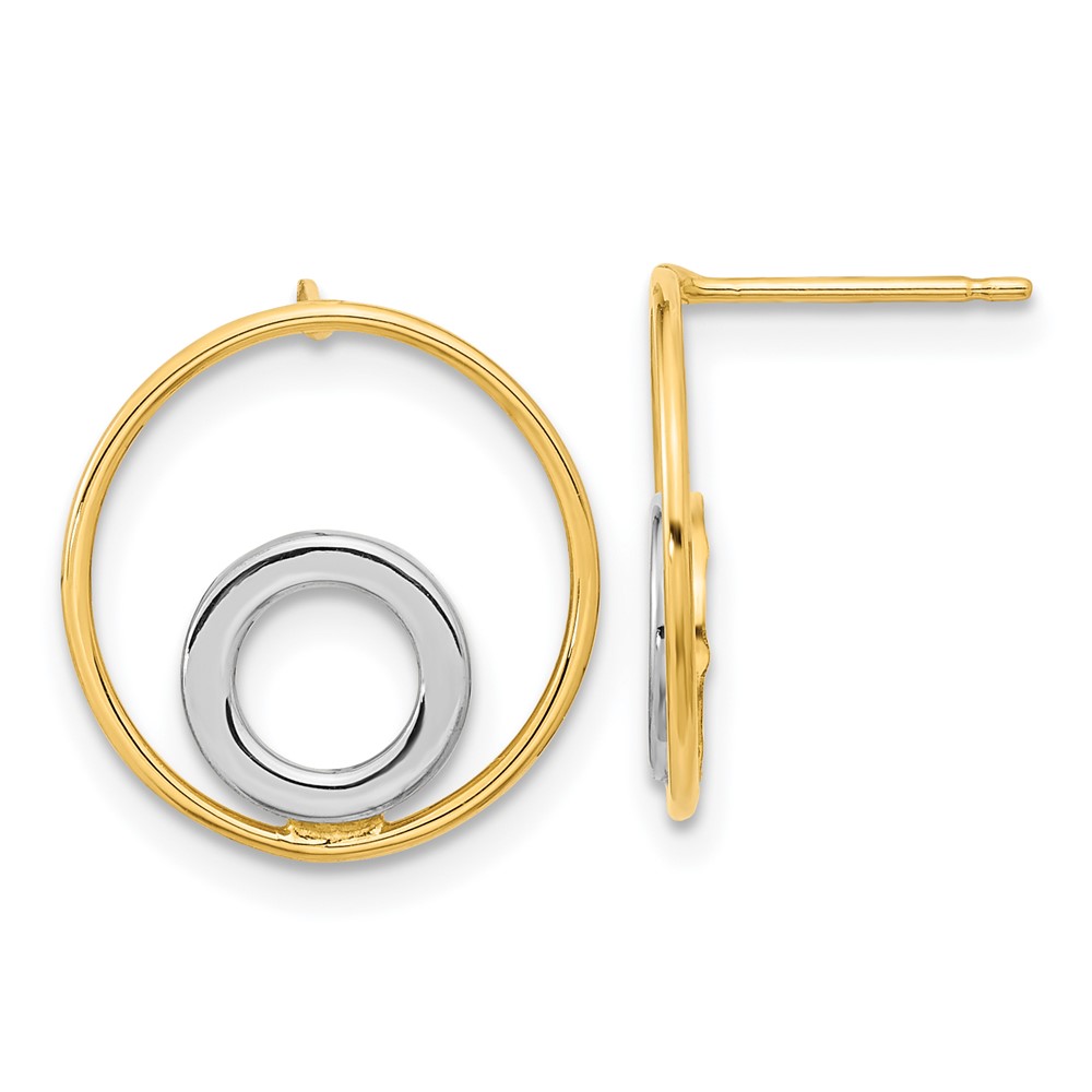 14K Gold White Rhodium Circle in Circle Post Earrings