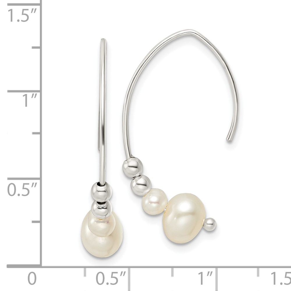 Sterling Silver Rhodium-plated Polished Glass Pearl Dangle Earrings