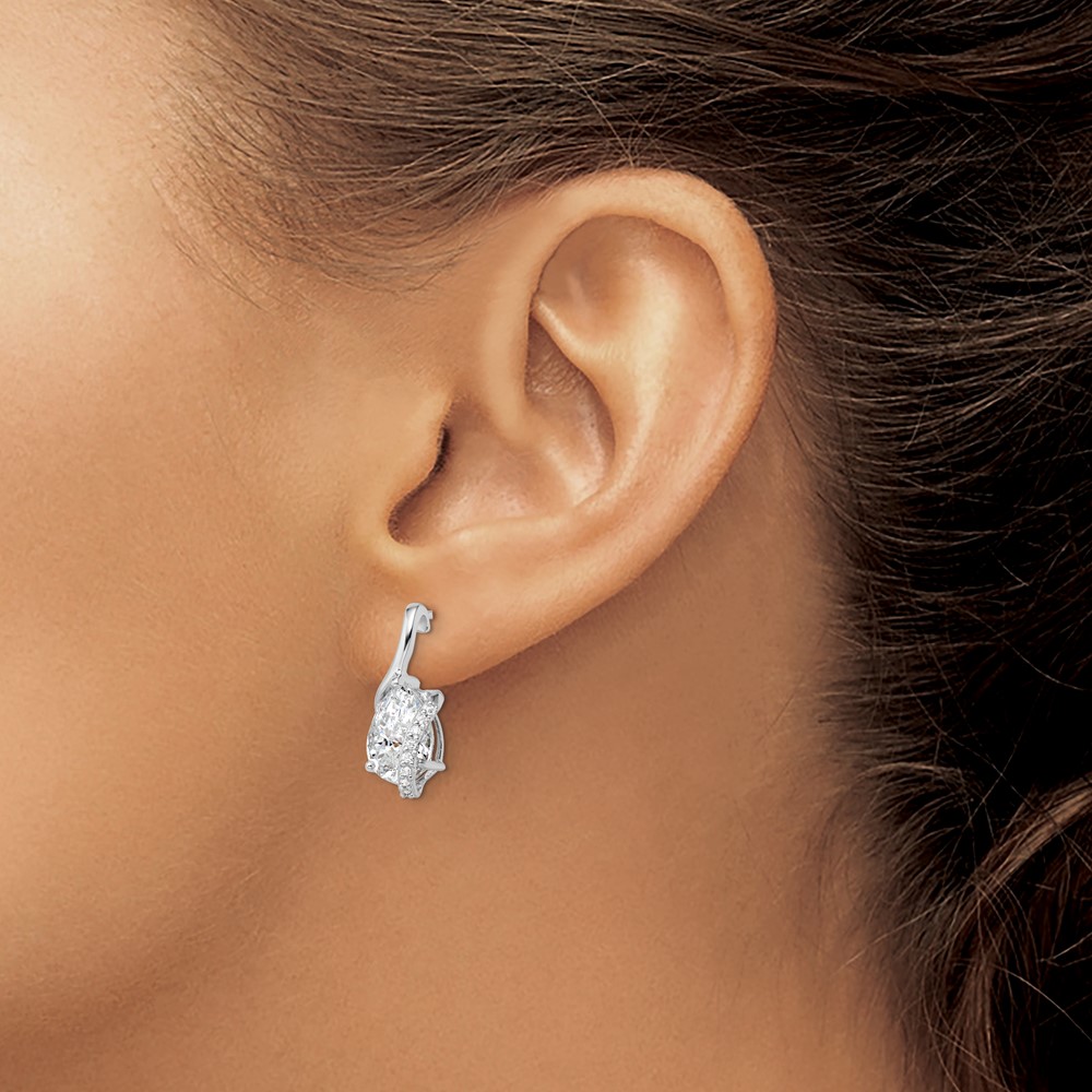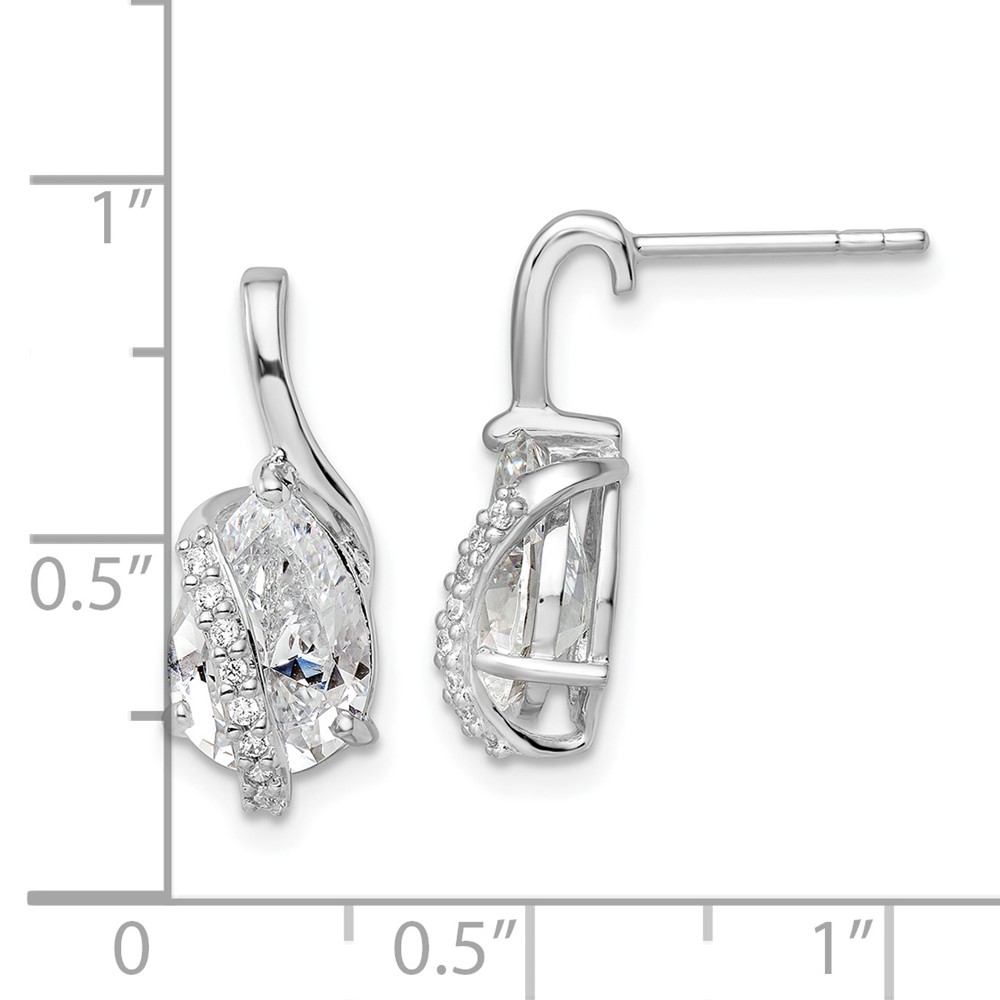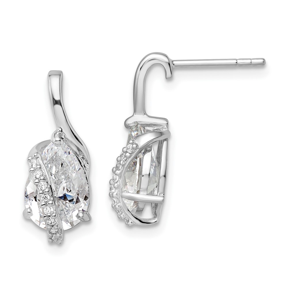 Sterling Silver Rhodium-plated Overlap Teardrop CZ Post Earrings
