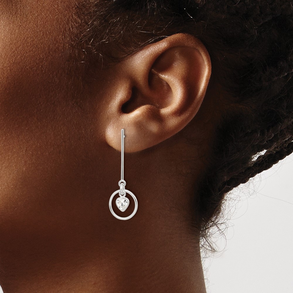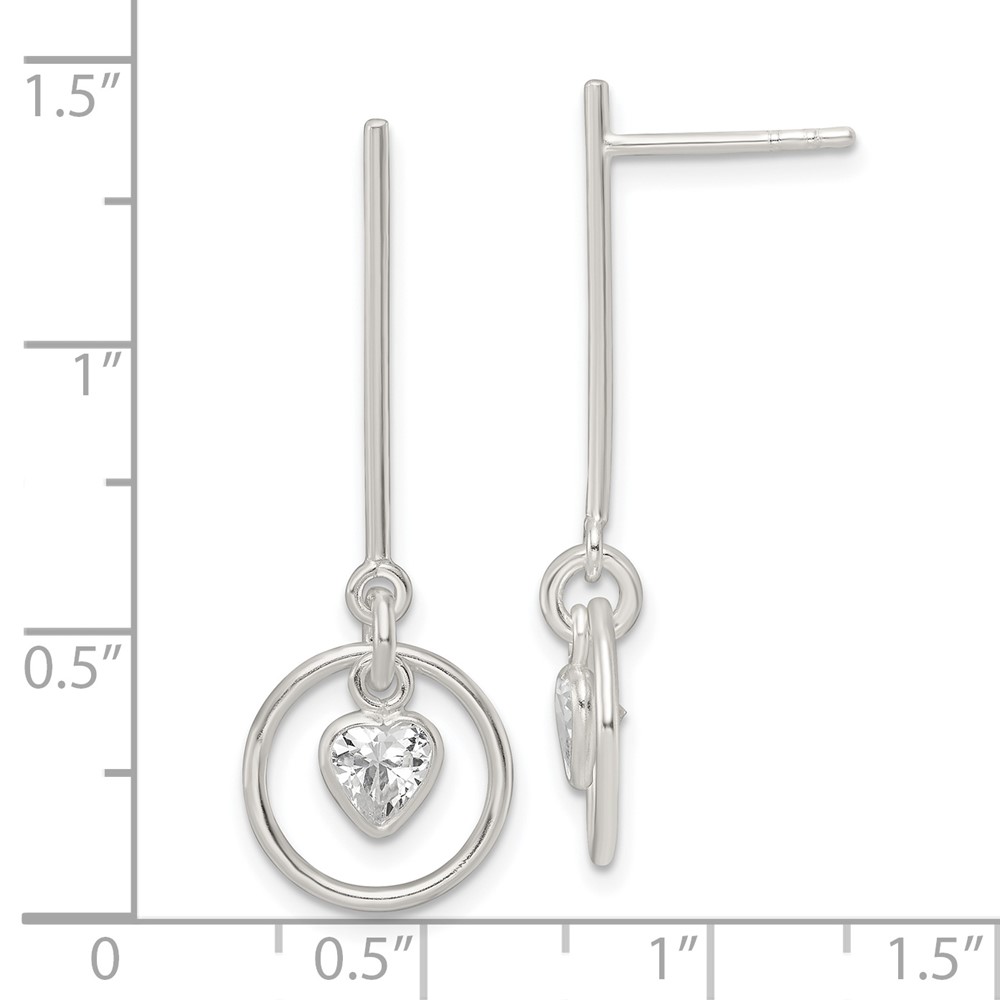 Sterling Silver Polished Dangle Heart CZ Post Earrings