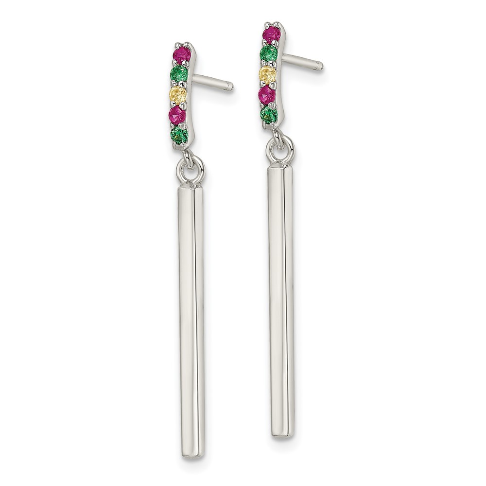 Sterling Silver Red/Green/Yellow CZ Dangle Bar Post Earrings