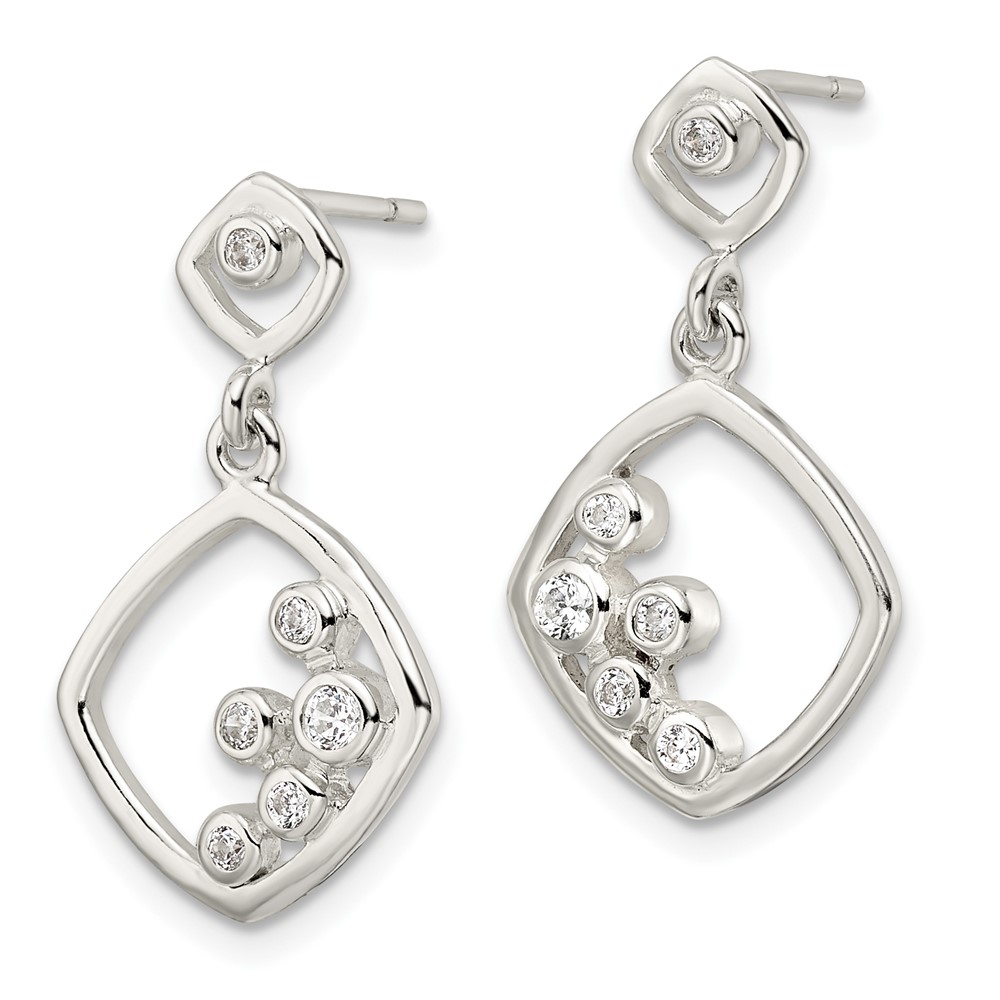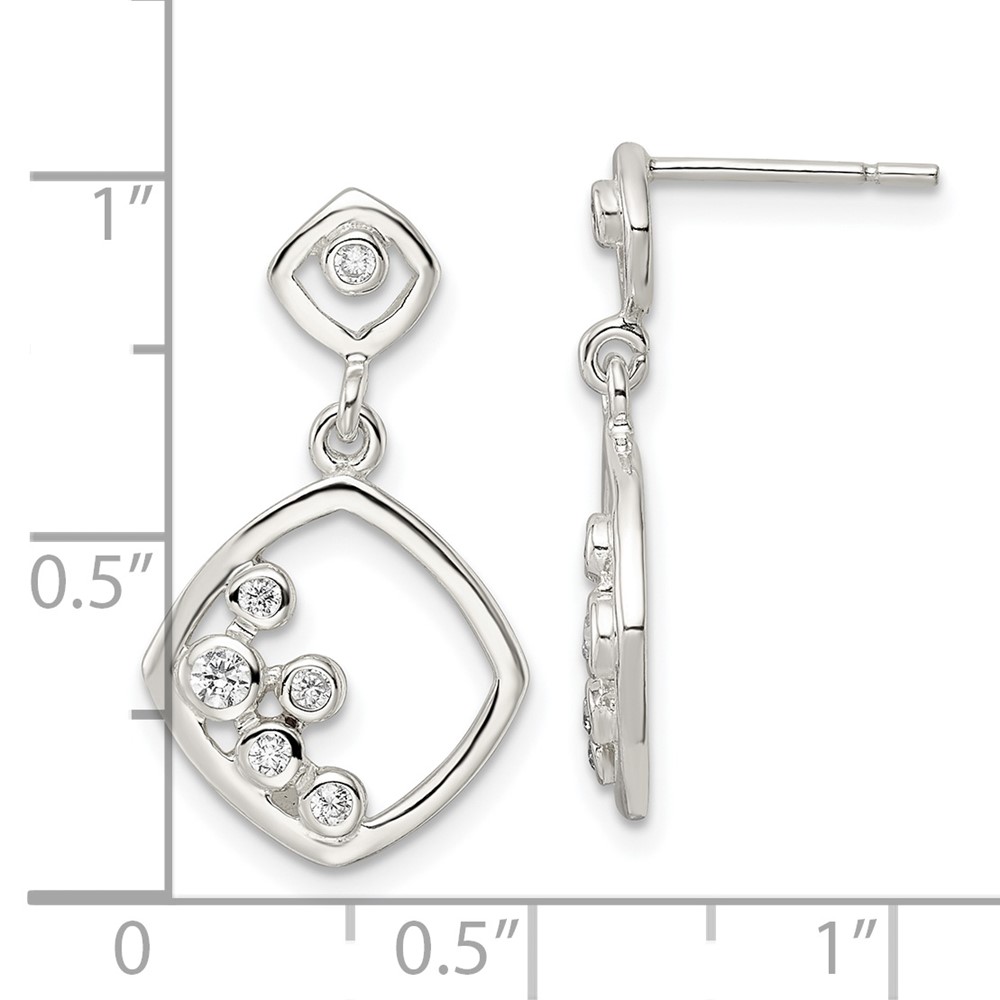 Sterling Silver Polished CZ Square Dangle Post Earrings