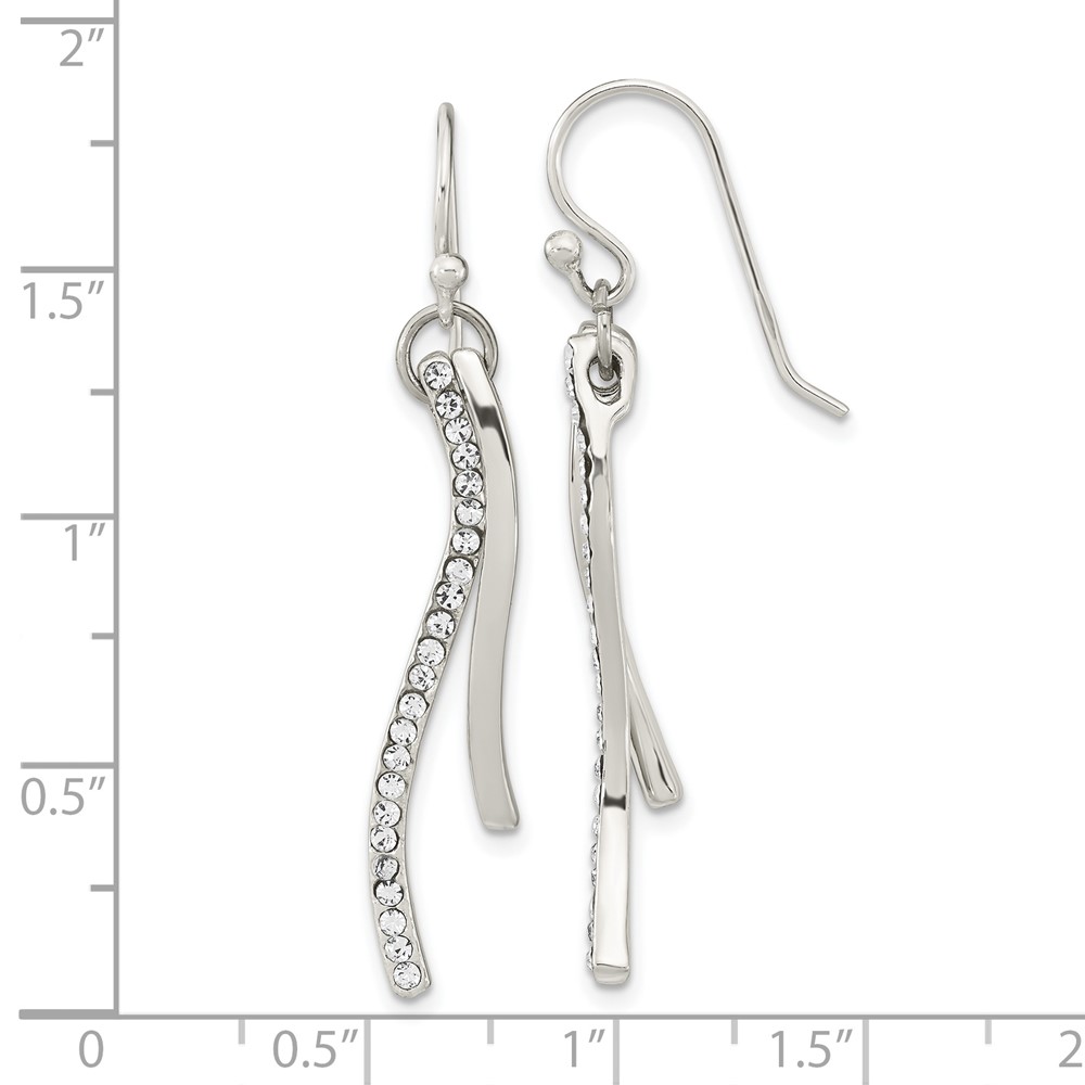 Sterling Silver Polished CZ Wavy Bar Dangle Shephard Hook Earrings