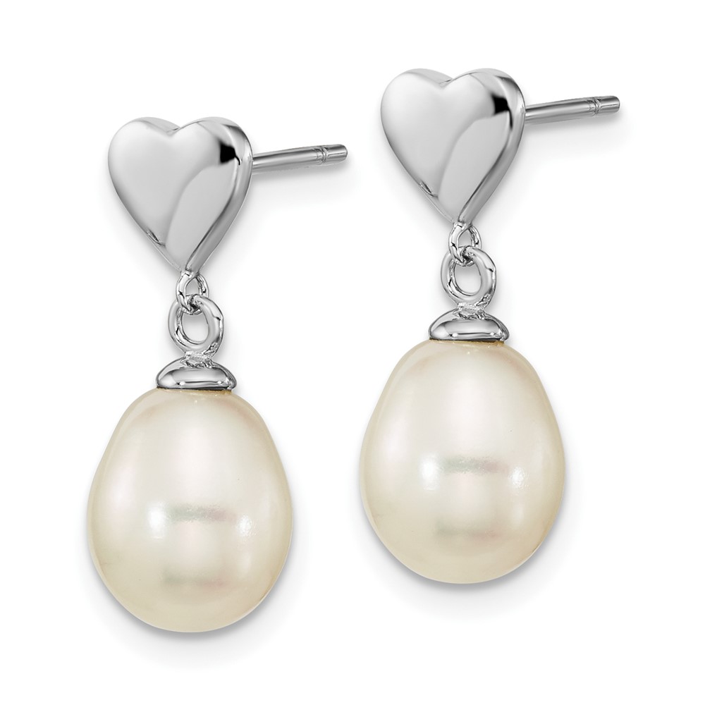 Sterling Silver Rhodium-plated 7x9mm White Teardrop Freshwater Cultured Pearl Heart Post Dangle Earrings