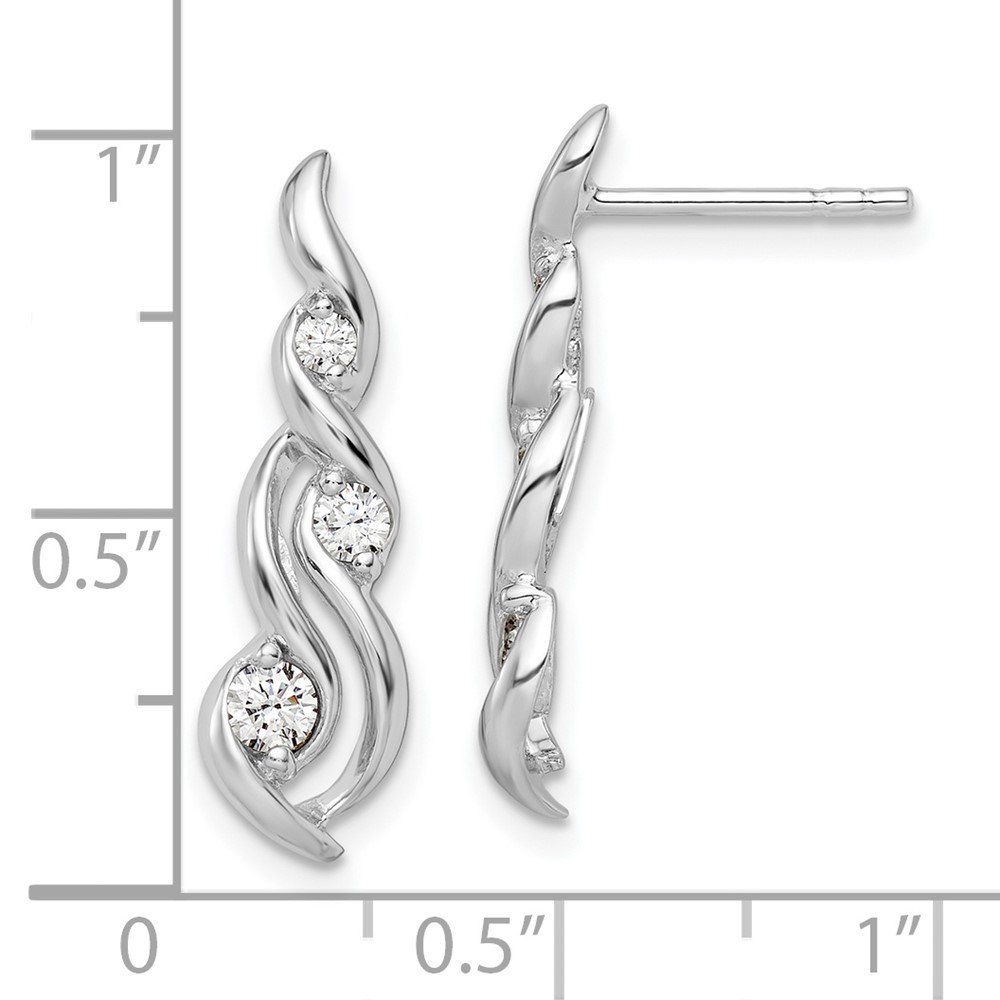 Sterling Silver Rhodium-plated Twist CZ Post Dangle Earrings