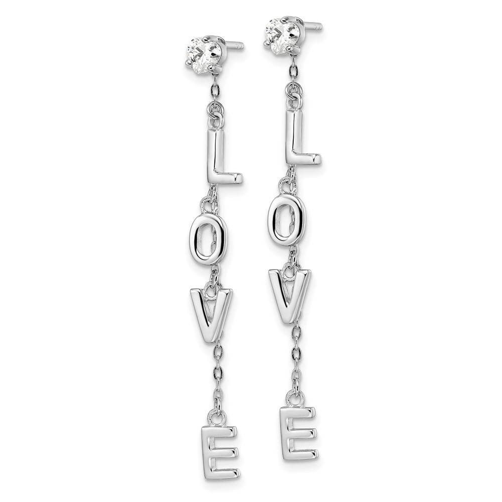 Sterling Silver Rhodium-plated Polished LOVE CZ Dangle Post Earrings