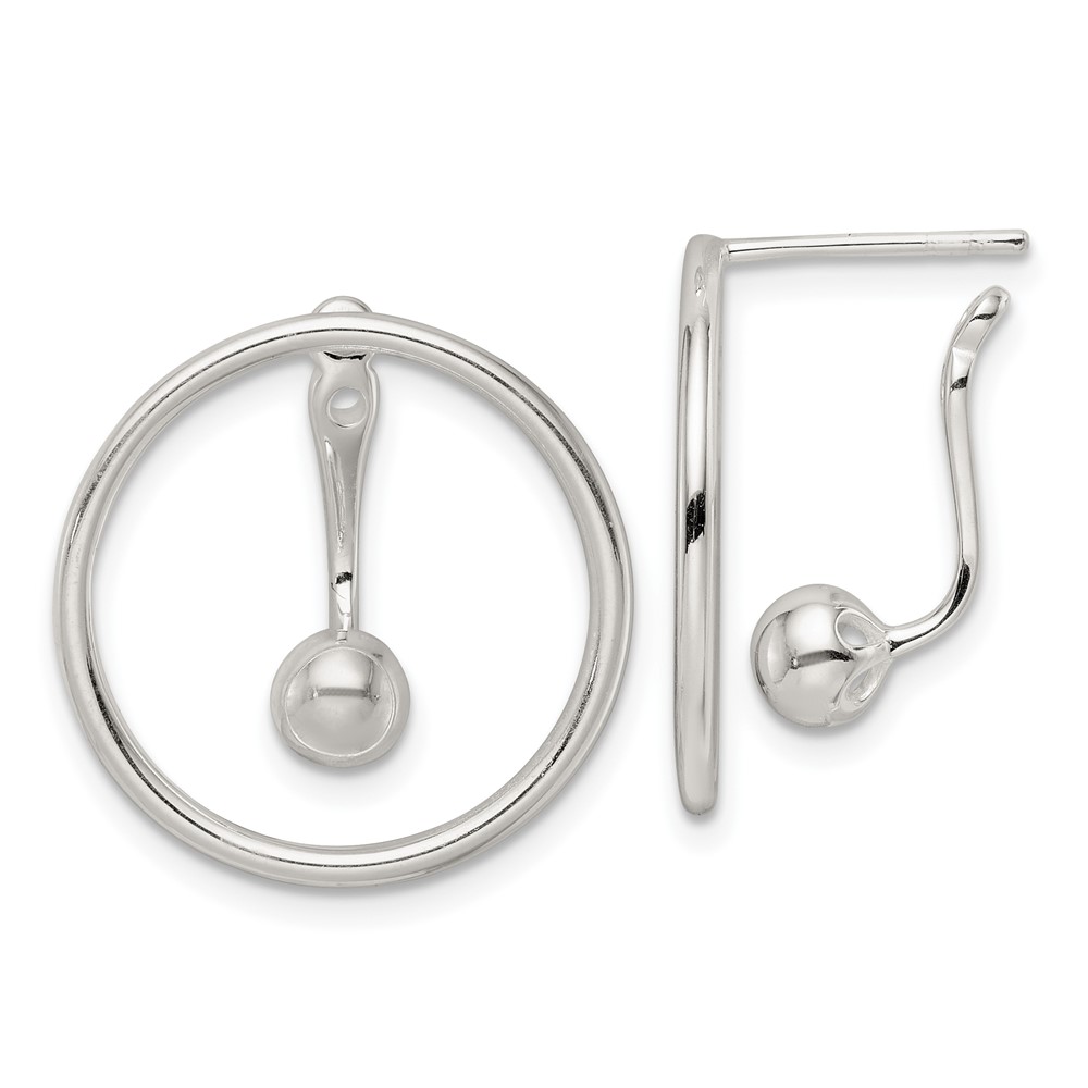 Sterling Silver Polished Circle w/drop & Dangle Threader Post Earrings