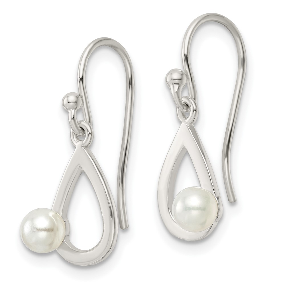 Sterling Silver Polished Teardrop w/ Imitation Pearl Shepherd Hook Earrings