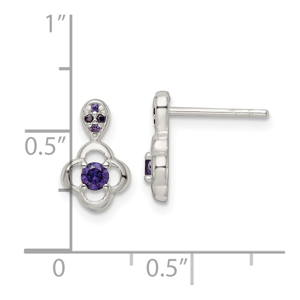 Sterling Silver Polished Purple CZ Flower Post Dangle Earrings