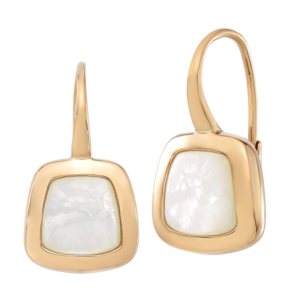 14k Polished Square Mother Of Pearl Leverback Earrings