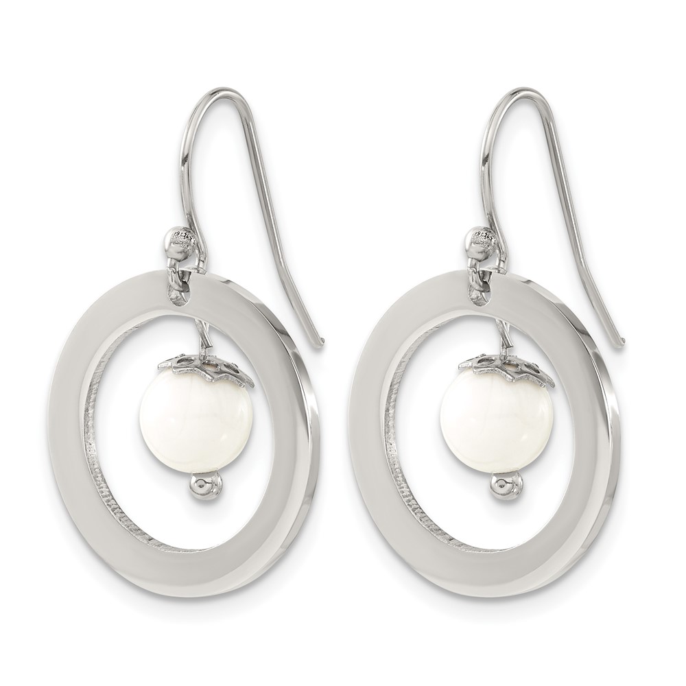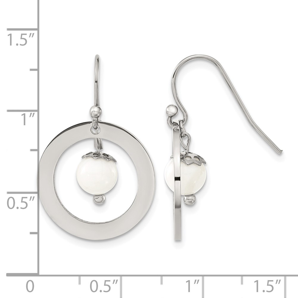 Chisel Stainless Steel Polished with Synthetic White Turquoise Dangle Shepherd Hook Earrings