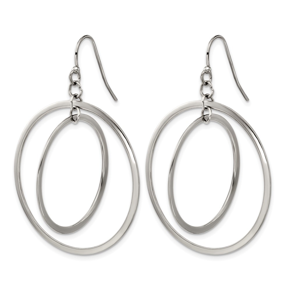 Chisel Stainless Steel Polished Double Circle Dangle Shepherd Hook Earrings