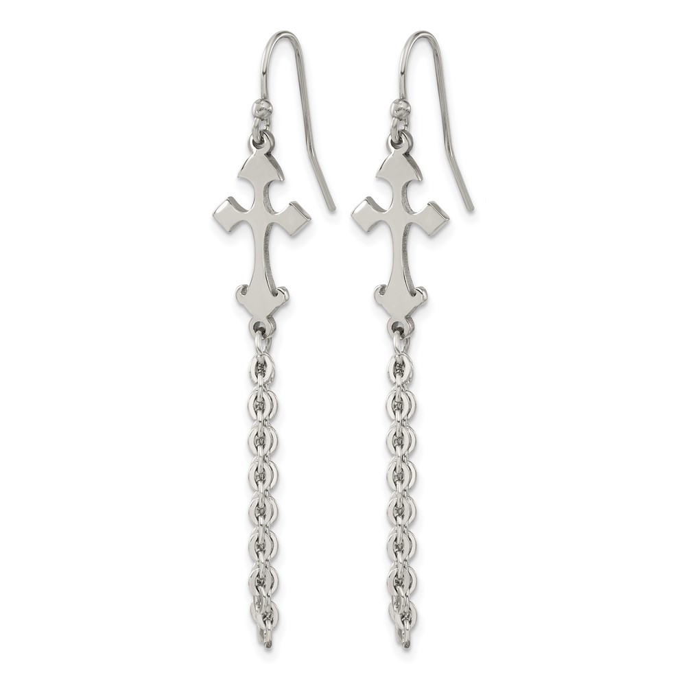 Chisel Stainless Steel Polished Cross Dangle Shepherd Hook Earrings