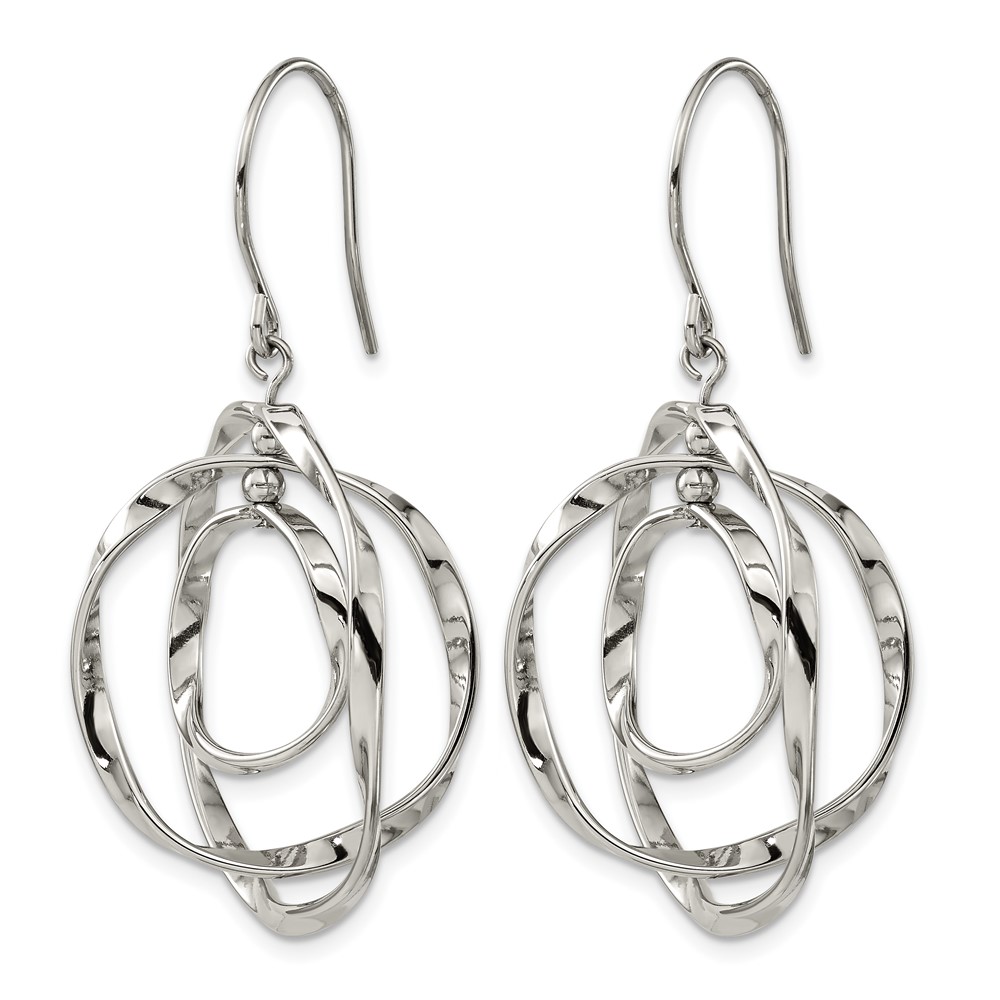 Chisel Stainless Steel Polished Wavy Circles Dangle Shepherd Hook Earrings