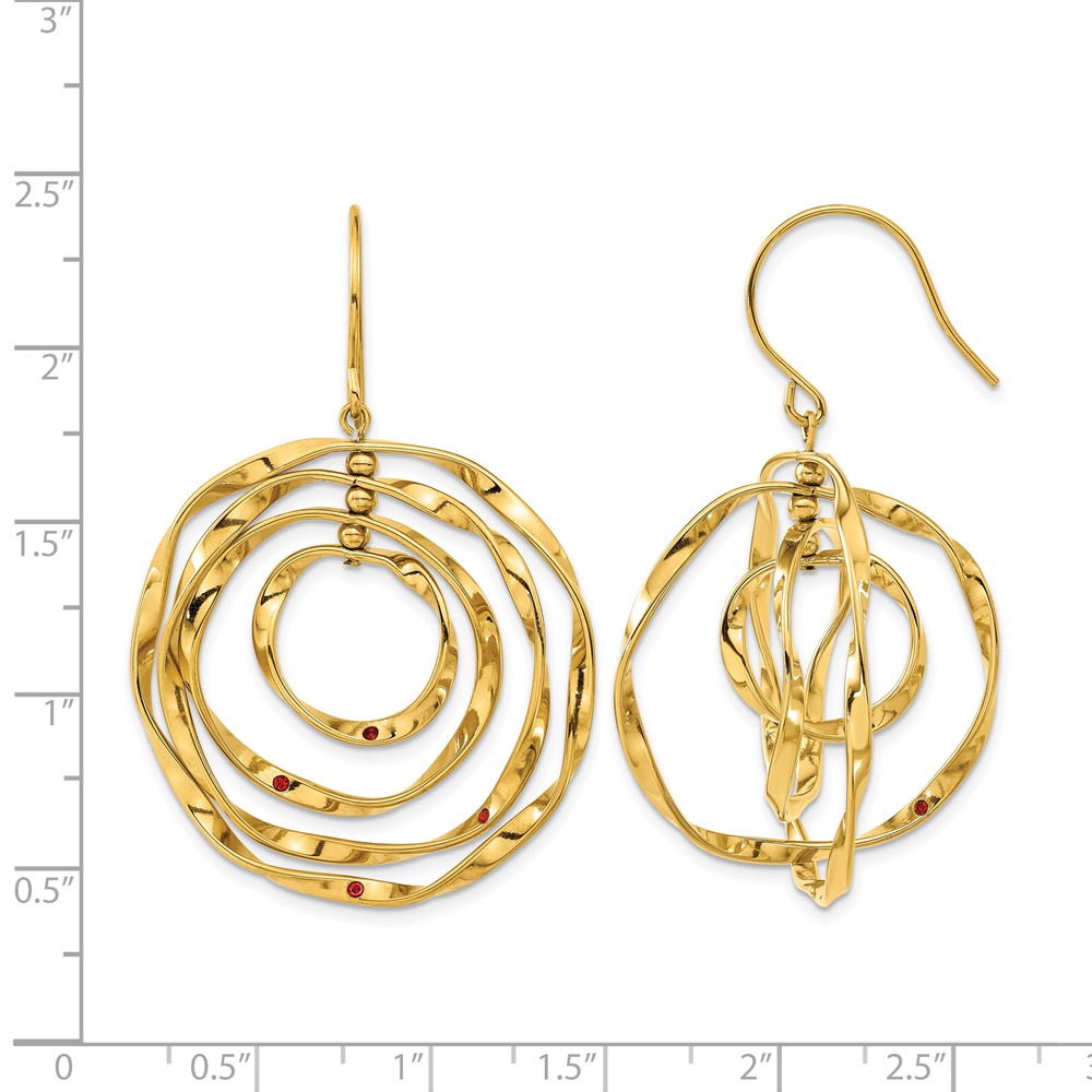 Chisel Stainless Steel Polished Yellow IP-plated with Red Preciosa Crystal Wavy Dangle Shepherd Hook Earrings