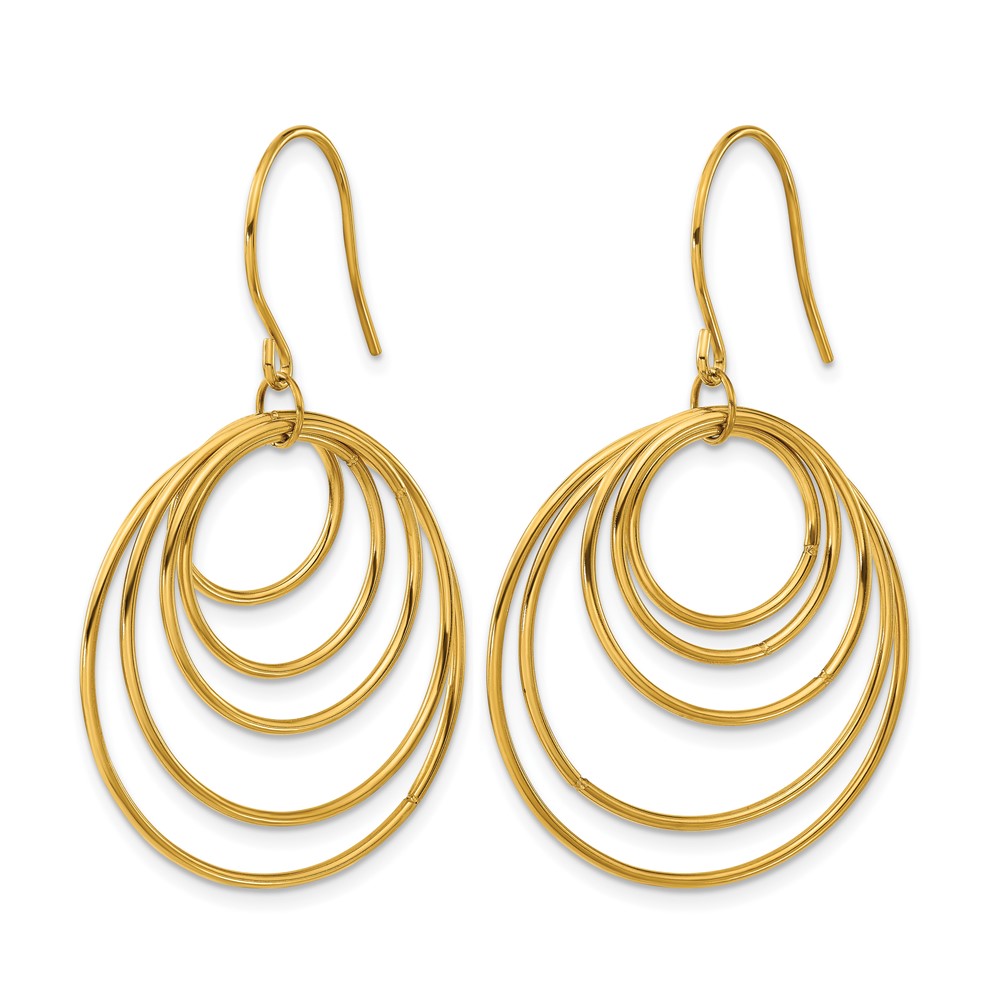 Chisel Stainless Steel Polished Yellow IP-plated Multi-Circle Dangle Shepherd Hook Earrings