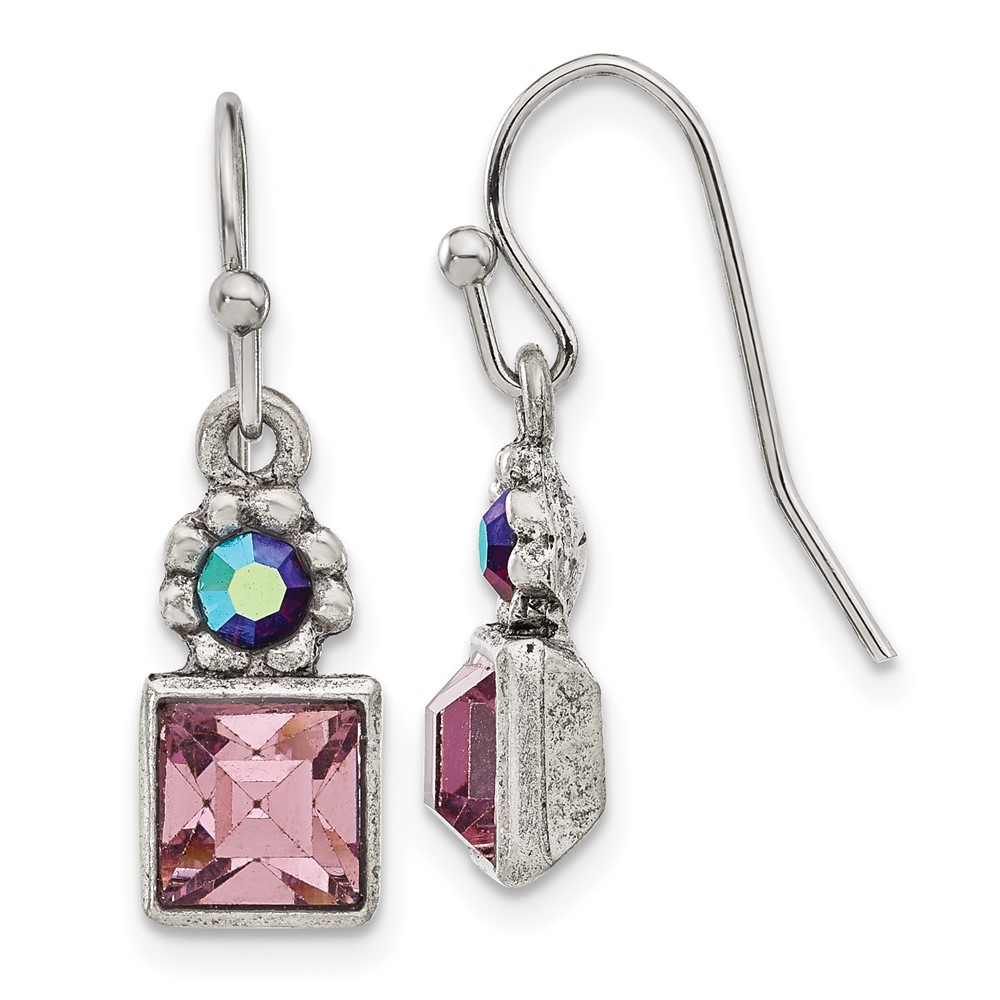 1928 Jewelry Silver-tone Purple Square and Aurora Borealis Round Crystal Wire Drop Earrings