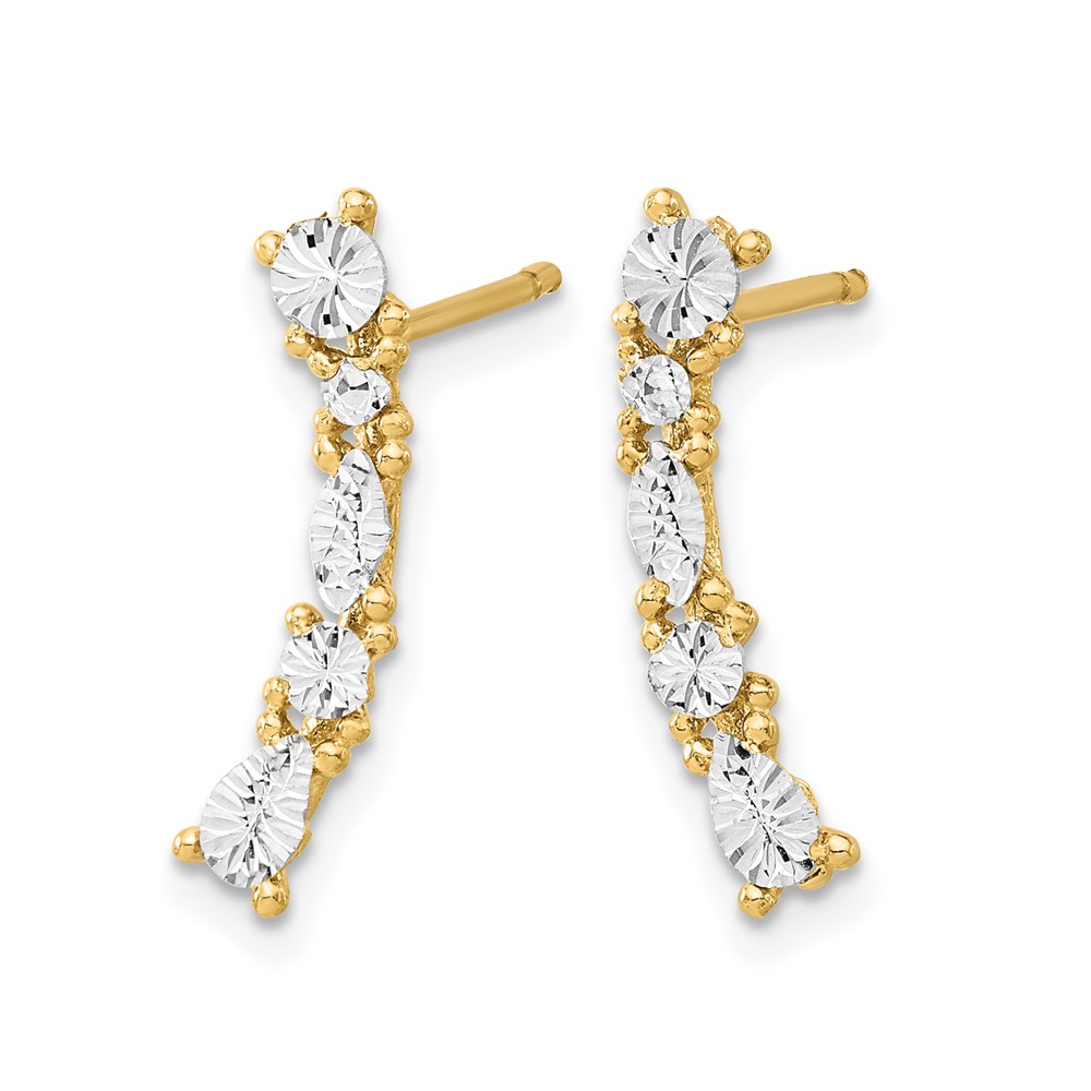 Leslie's 14K and White Rhodium Polished and Diamond-cut Post Earrings