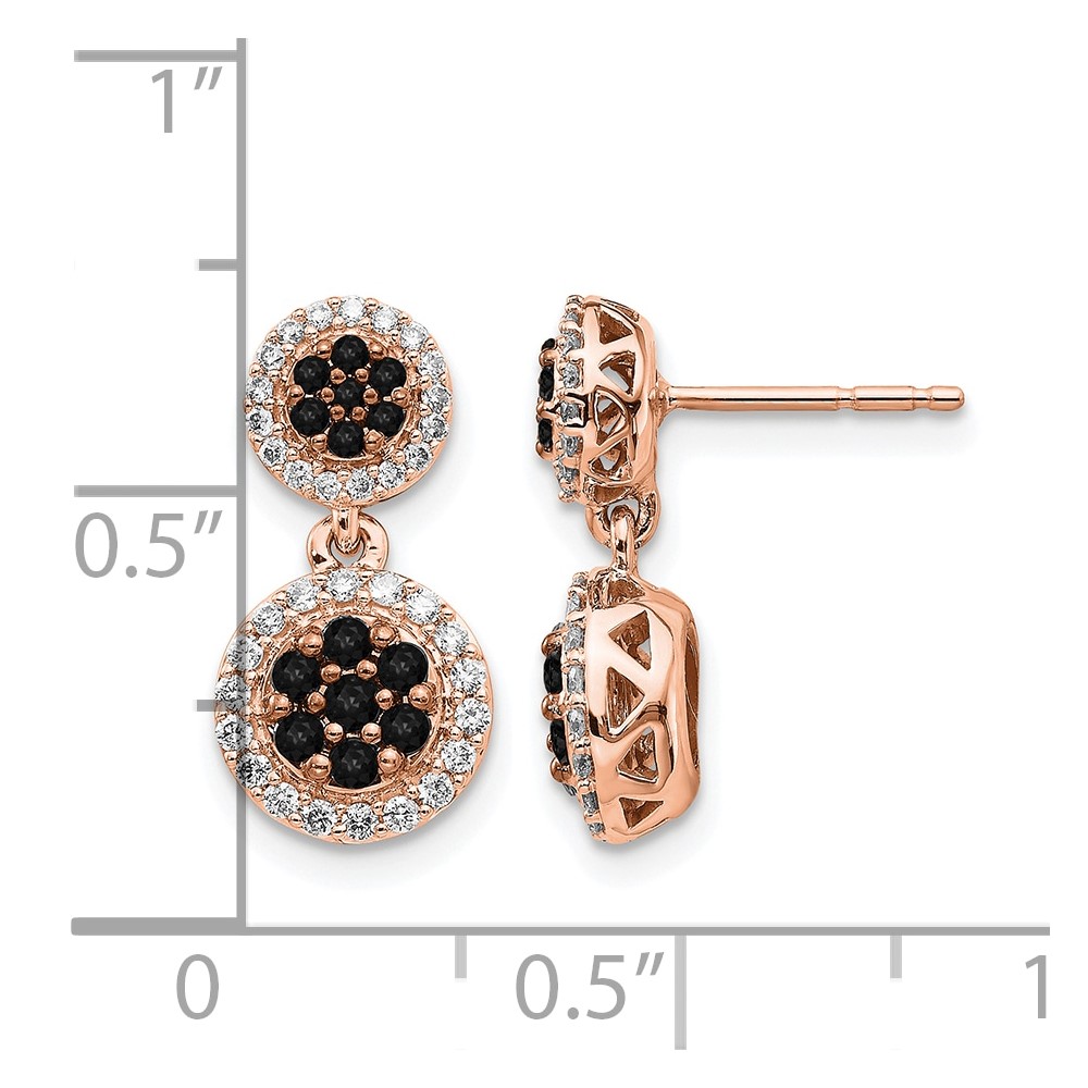 14k Rose Gold Black/White Diamond Cluster Dangle Earrings