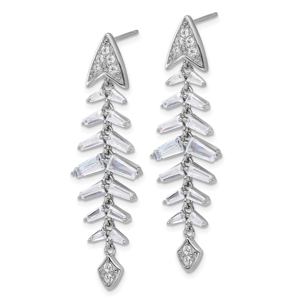 Cheryl M Sterling Silver Rhodium-plated Brilliant-cut and Tapered Baguette-cut CZ Post Dangle Earrings