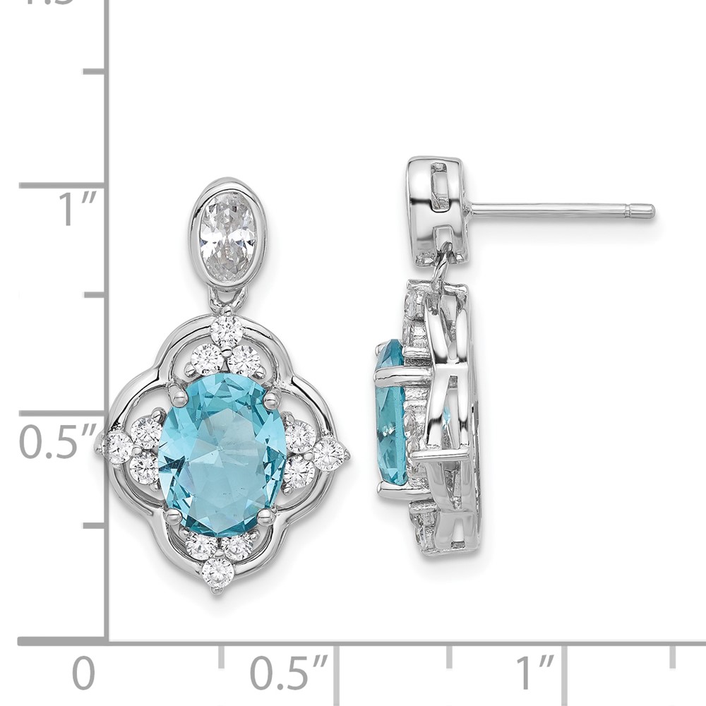 Cheryl M Sterling Silver Rhodium-plated Brilliant-cut Blue Glass and White CZ Post Dangle Earrings