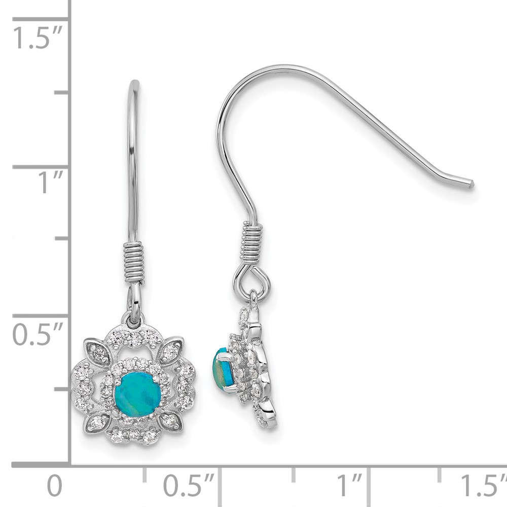 Cheryl M Sterling Silver Rhodium-plated Cabochon Lab Created Blue Opal and Brilliant-cut CZ Shepherd Hook Dangle Earrings