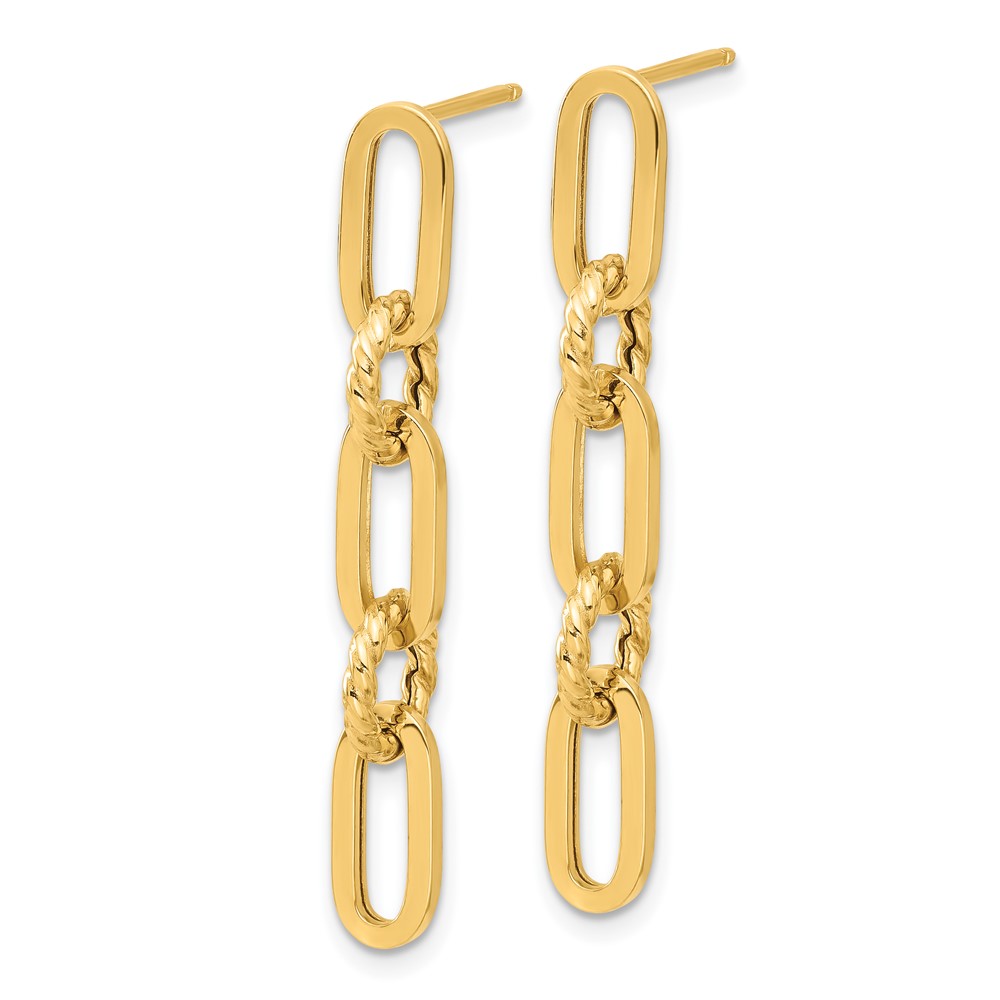 14K Polished and Textured Chain Link Dangle Post Earrings