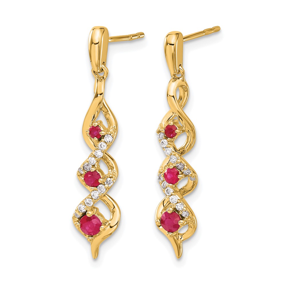 14k Yellow Gold Diamond and Ruby Post Dangle Earrings