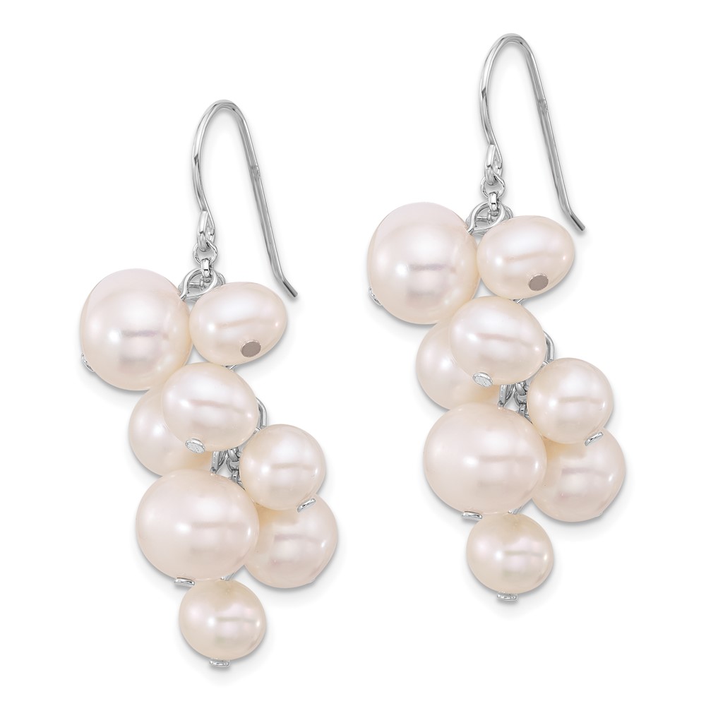 Sterling Silver Rhodium-plated 7x9mm White Teardrop Freshwater Cultured Pearl Heart Post Dangle Earrings