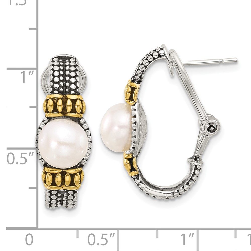 Sterling Silver Gold-tone Antiqued Synthetic Pearl Omega Back Earrings