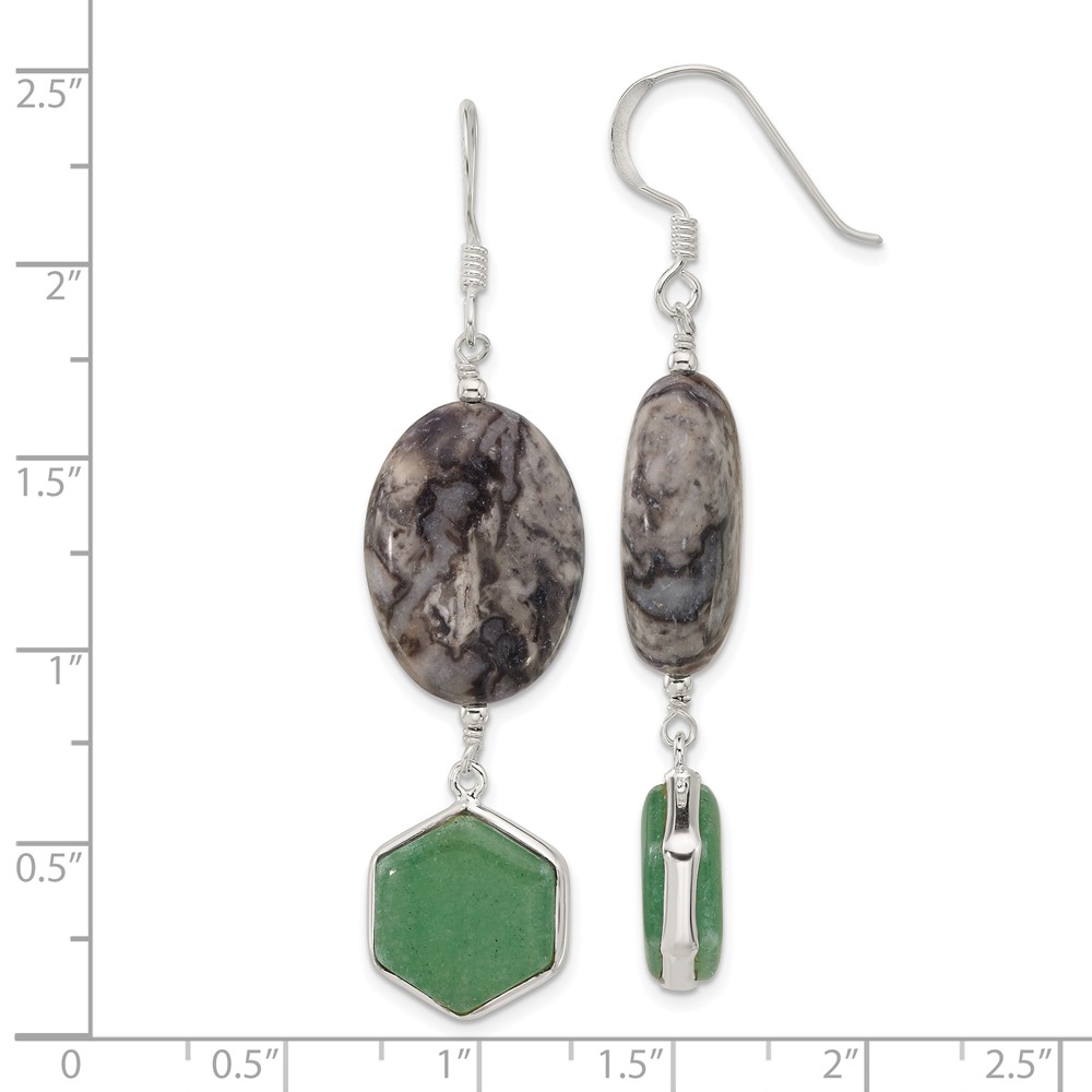 Sterling Silver Hexagon Aventurine & Oval Leopard Jasper Dangle Earrings