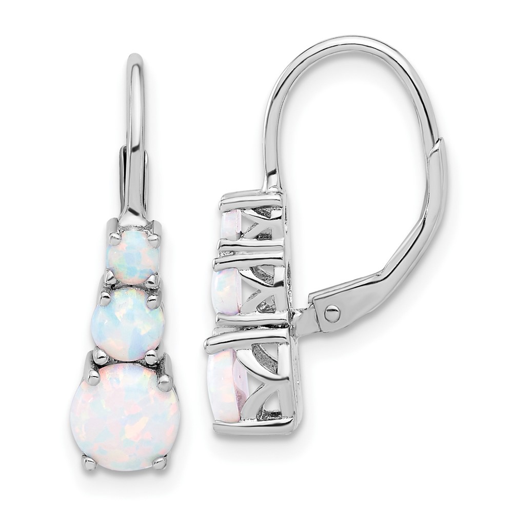 Sterling Silver Rhodium-plated Polished Created Opal Leverback Earrings