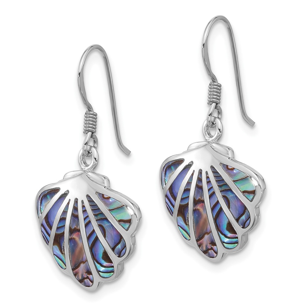 Sterling Silver Rhodium-Plated Polished Abalone Shell Dangle Earrings