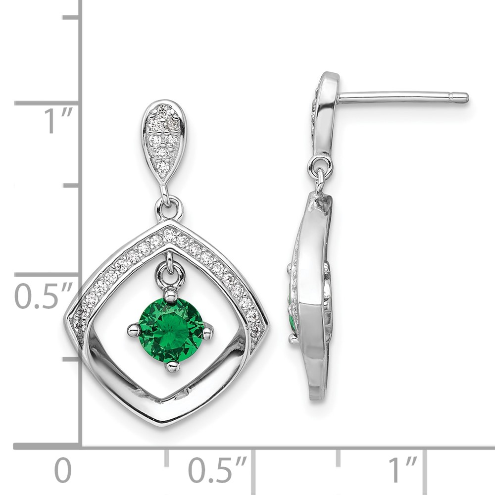 Sterling Silver RH-plated CZ Circle Dangle Jackets with CZ Post Earrings