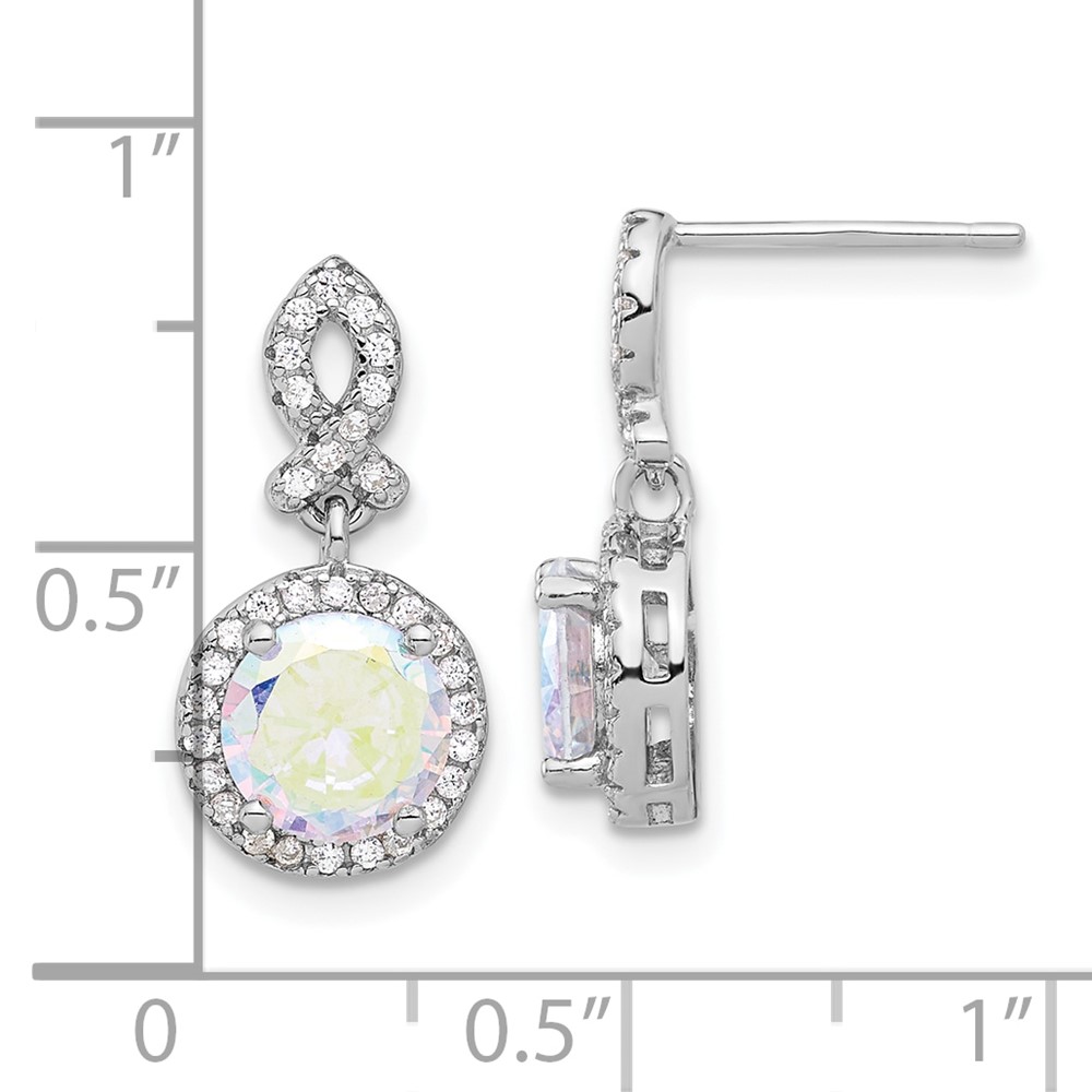 Sterling Silver Rhod-plated Iridescent & Clear CZ Post Dangle Earrings