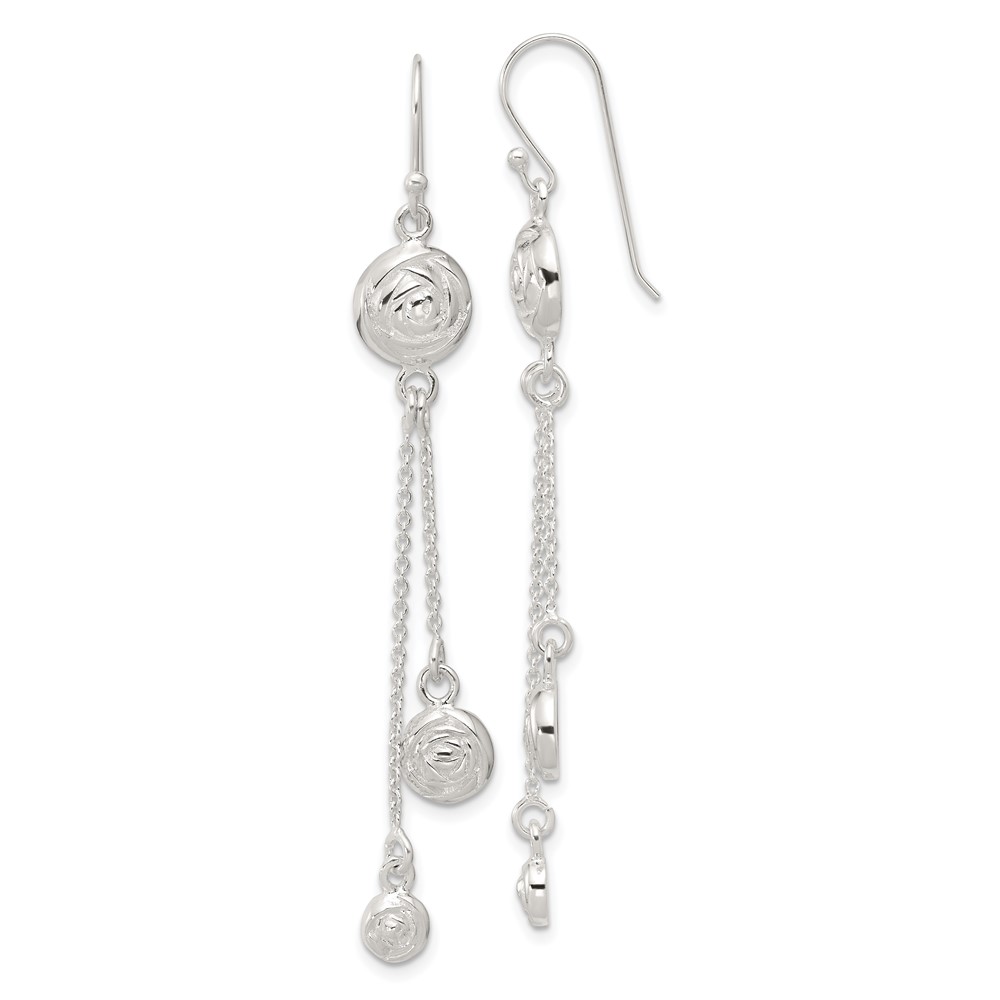 Sterling Silver Polished & Textured Multi-chain Rose Dangle Earrings