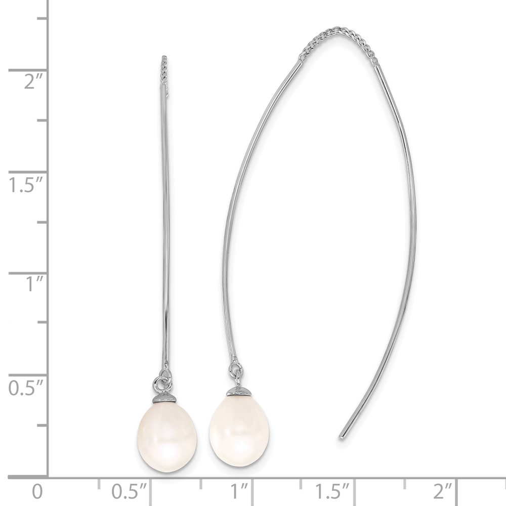 Sterling Silver Rhodium-plated 7-8mm White Teardrop Freshwater Cultured Pearl Threader Earrings