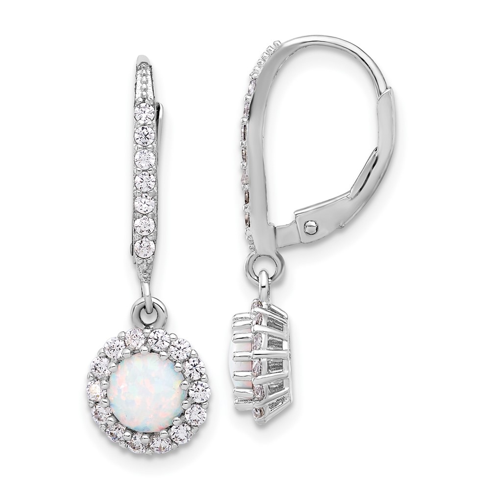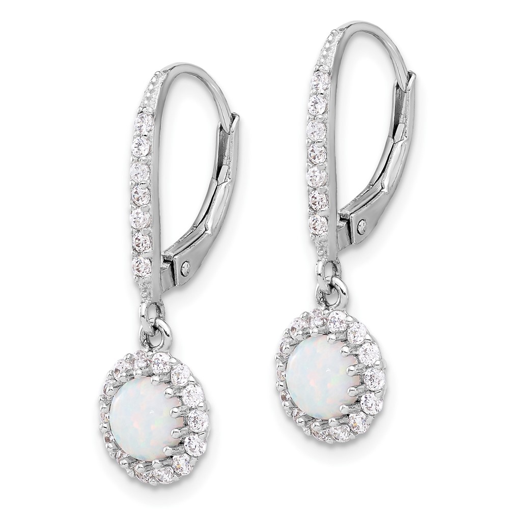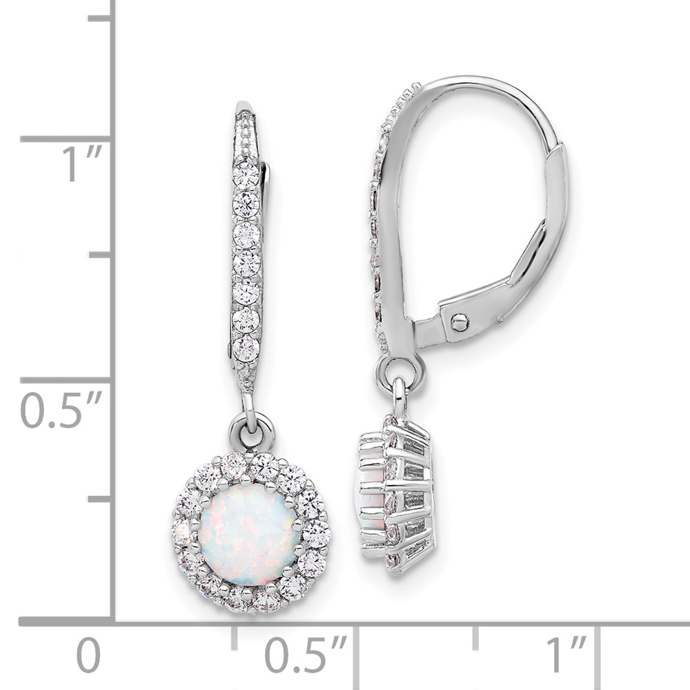 Sterling Silver RH-plated CZ & Cr. Opal Halo Dangle Leverback Earrings