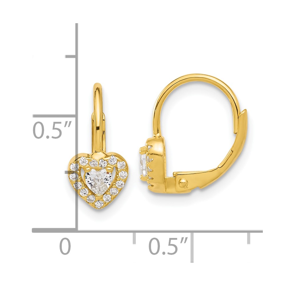 Sterling Silver Gold-tone CZ Heart Leverback Earrings