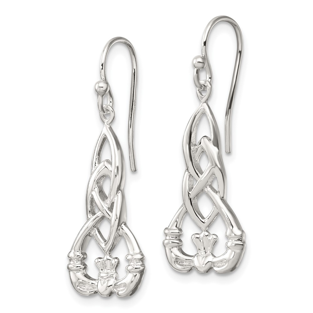 Sterling Silver Polished Celtic Knot Claddagh Dangle Earrings
