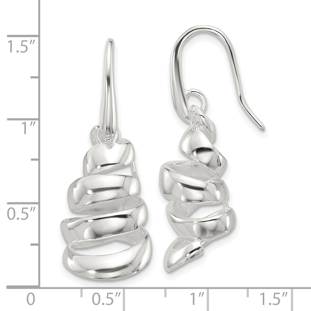 Sterling Silver Polished Silver-plated Spiral Dangle Shepherd Hook Earrings