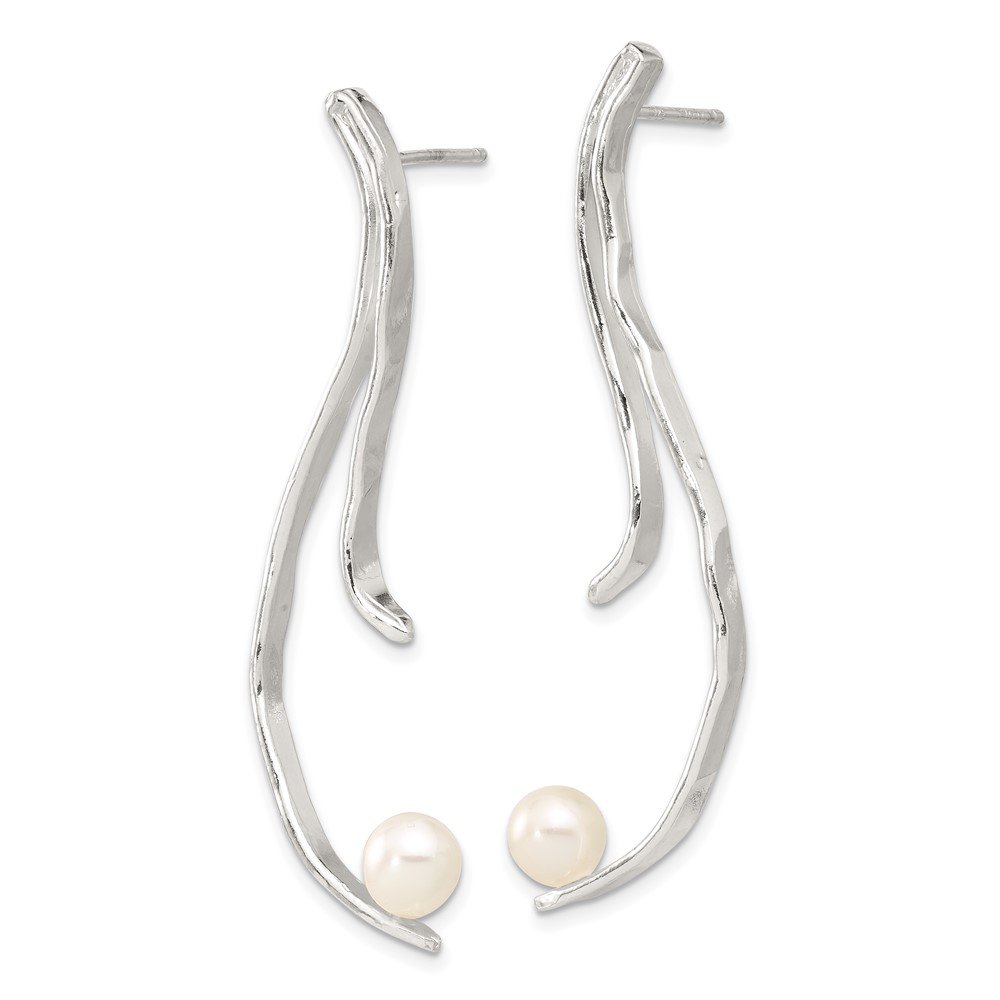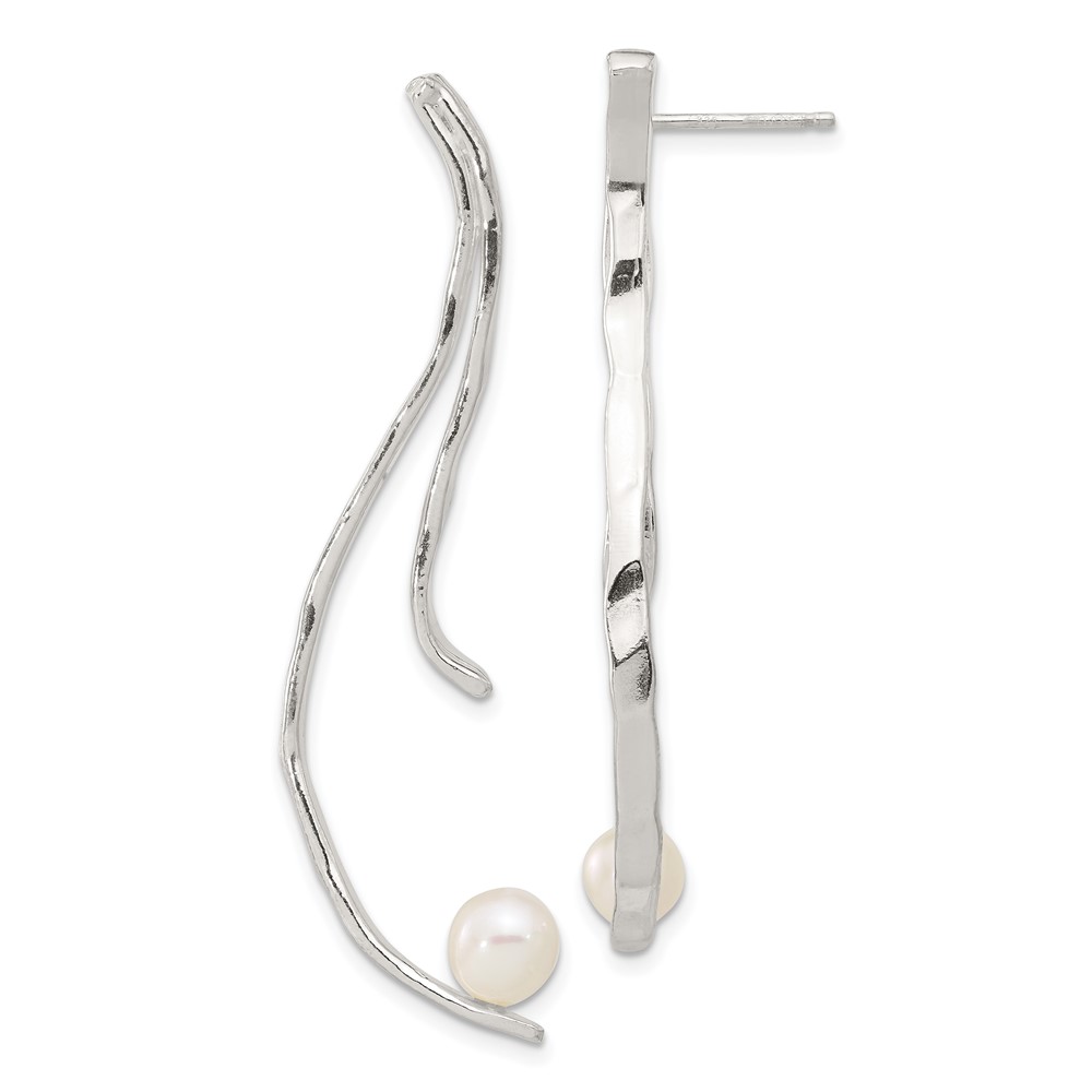 Sterling Silver RH-pltd Polish/Hammered FWC Pearl Post Dangle Earrings