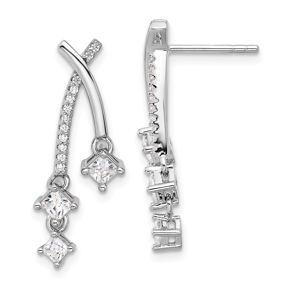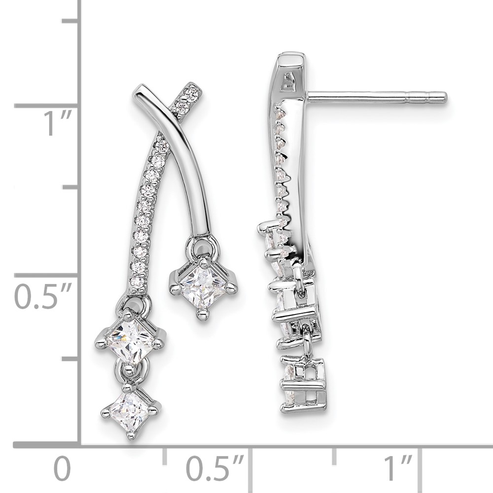 Pure Fire Sterling Silver Rhod-plated Fancy CZ Dangle Post Earrings