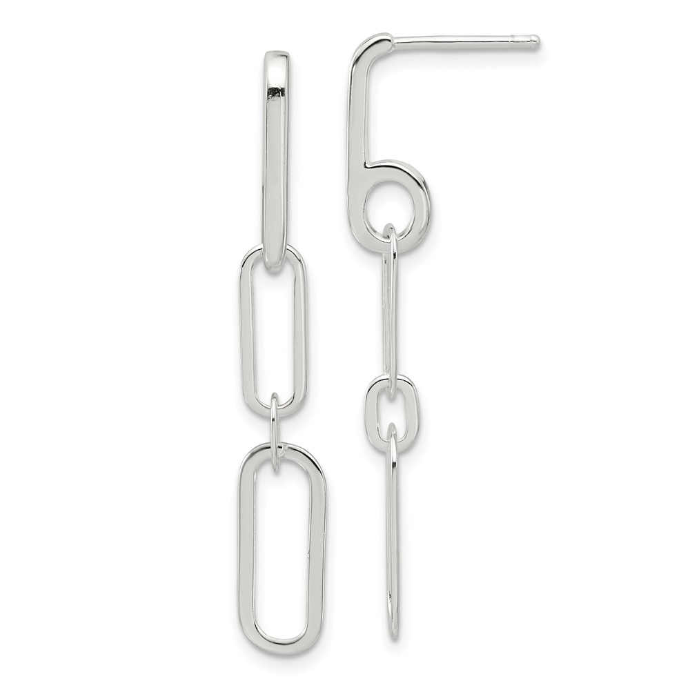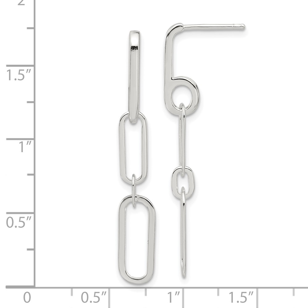 Sterling Silver E-coated Paperclip Link Post Dangle Earrings