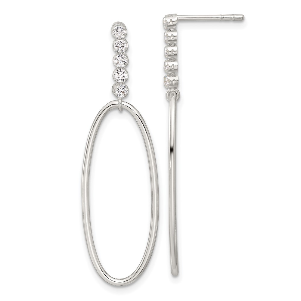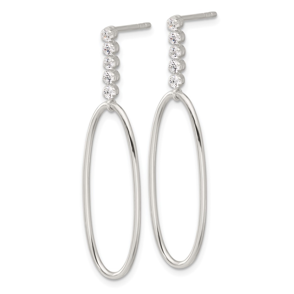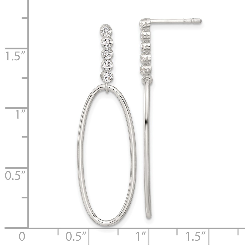 Sterling Silver E-coated CZ Oval Post Dangle Earrings