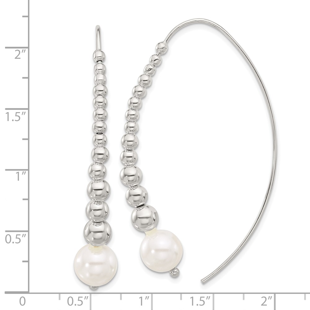 Sterling Silver Polished Beaded Simulated Pearl Threader Earrings