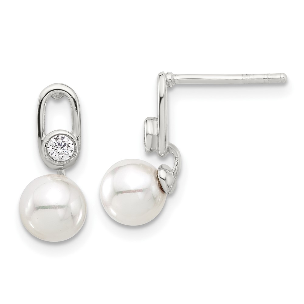 Sterling Silver E-coated Polished 6-7mm Shell Pearl and CZ Post Earrings